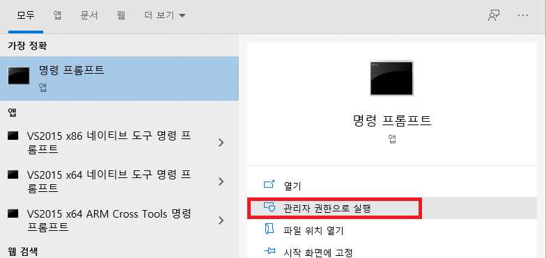 [시작 작업표시줄 - cmd] 관리자 권한으로 실행