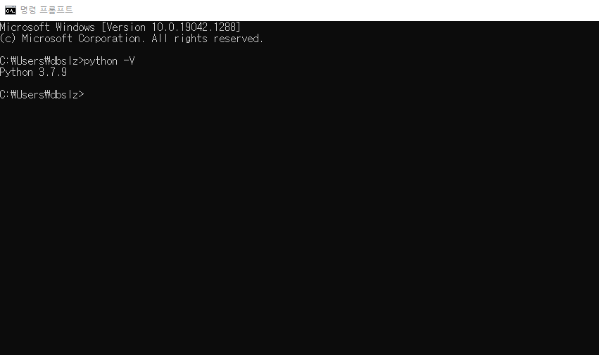 명령어 cmd창에 입력하여 Python 설치 유/무를 확인해준다.